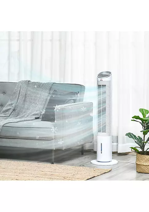 – LED panel displays temperature, speed, modes, swing, timer, and cooling;