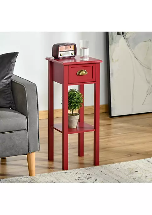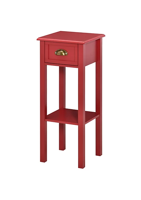 – Open bottom shelf, drawer, and flat tabletop for ample storage and display space;
