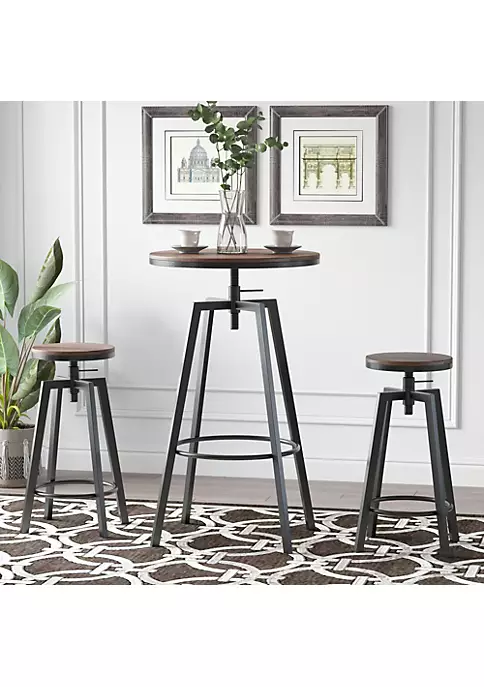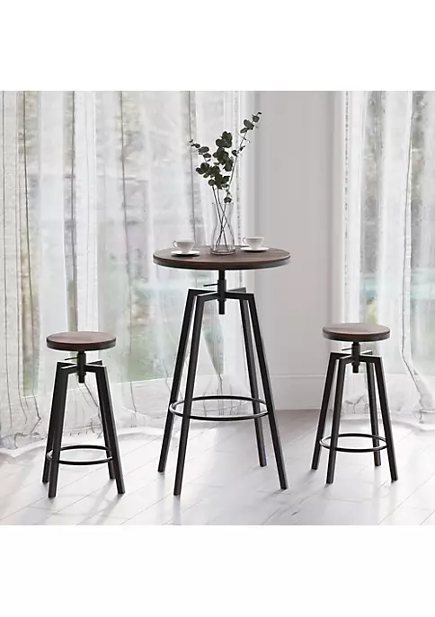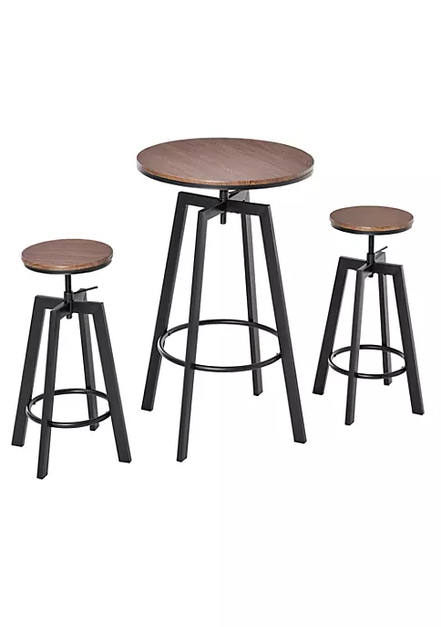 – 3-piece dining set includes a round bar table and 2 matching stools