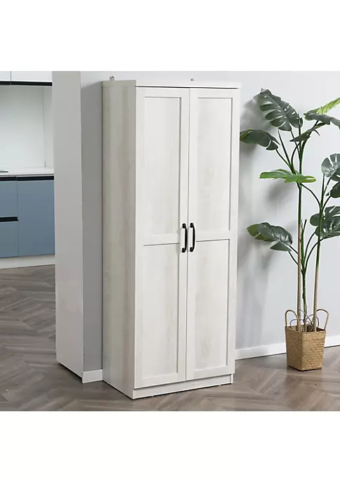 – Four shelves with two adjustable for office supplies, clothing, nonperishable foods, and extra linens;
