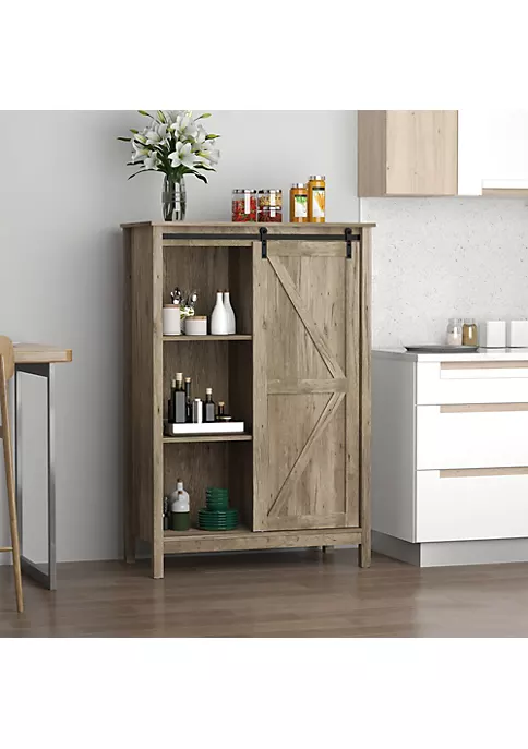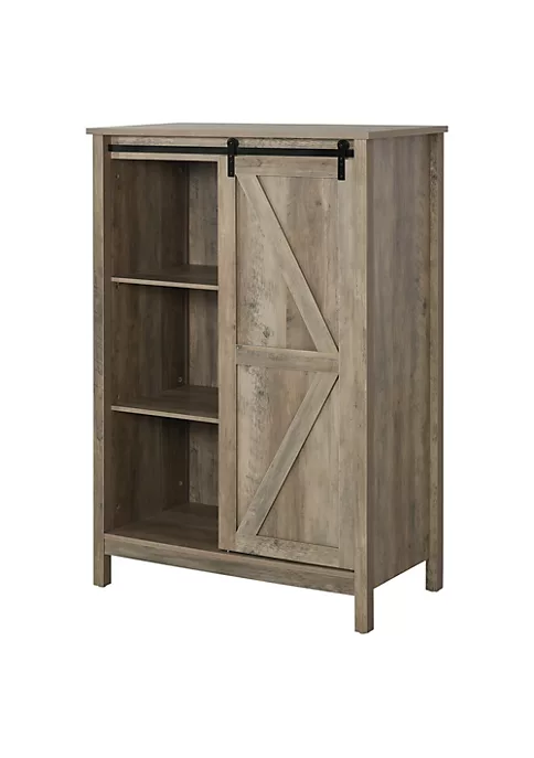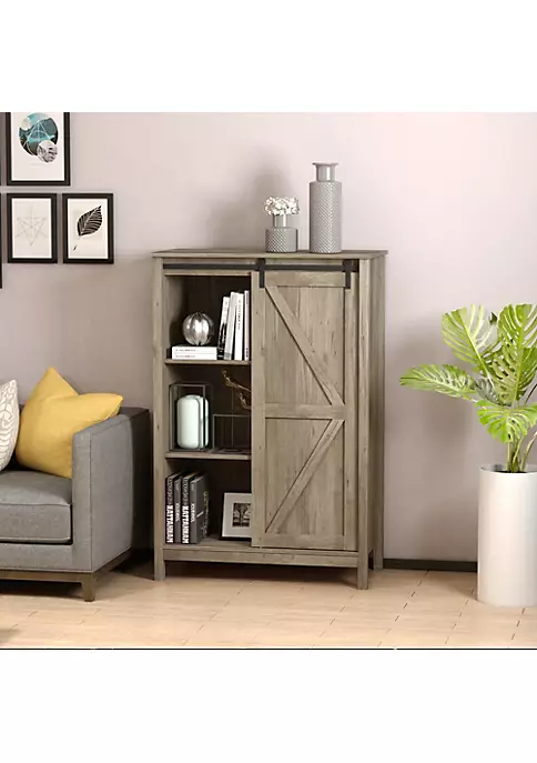 – Single sliding barn door design, create chic design, and use less space than regular cabinet door