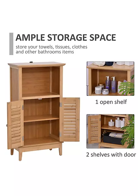 – 1 open shelf on the top and 2 shelves with a door at the bottom