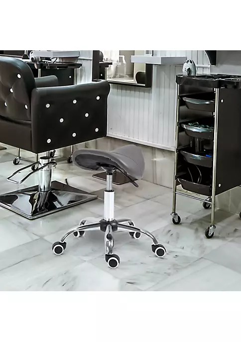 – Height is fully adjustable and keeps the clients within reach while in a sitting position