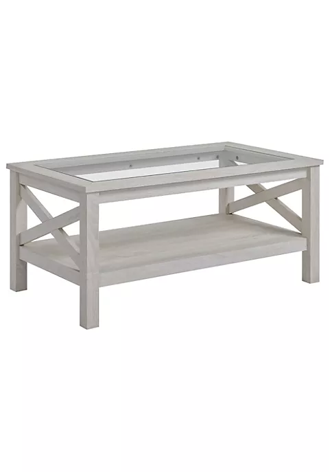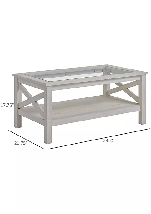 – Suitable for living room, lounge, game room, and more; – The tabletop is made of tempered glass, easy to clean and not easy to crack; – X-shaped cross brace on each side provides extra support and simplicity; – Bottom shelf offers additional storage space; – Quality MDF board for high stability; – Featuring exquisite workmanship, will serve for a long time; – Assembly required;