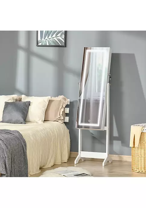 – Large storage space featuring earring slots, necklace hooks, ring slots, makeup brush holder, and shelves;