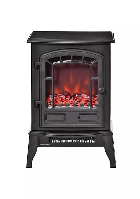 – Freestanding electric fireplace with transparent tempered glass front for better viewing;