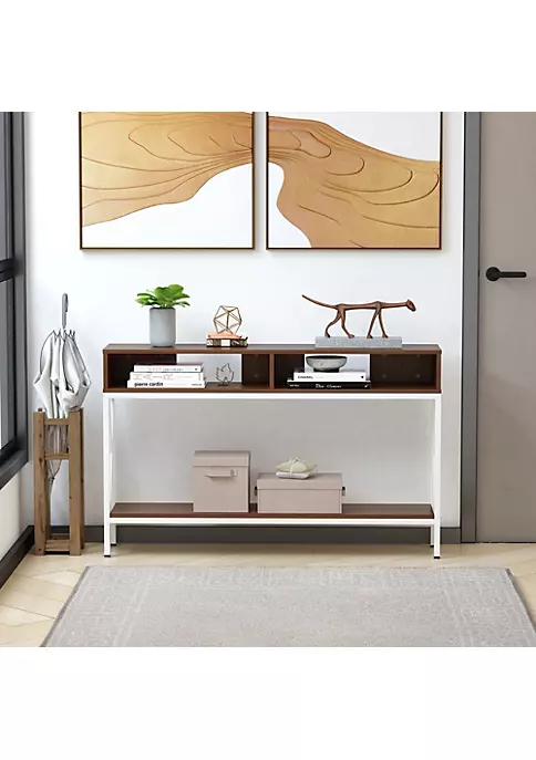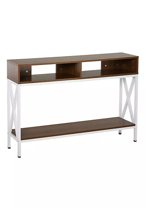 – Made from metal frame and particle board, this console table is durable to use
