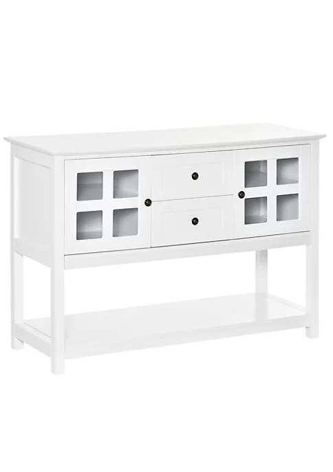 – 2 glass door cabinets, 2 drawers and an open shelf for daily accessories, utensils, and dry goods;
