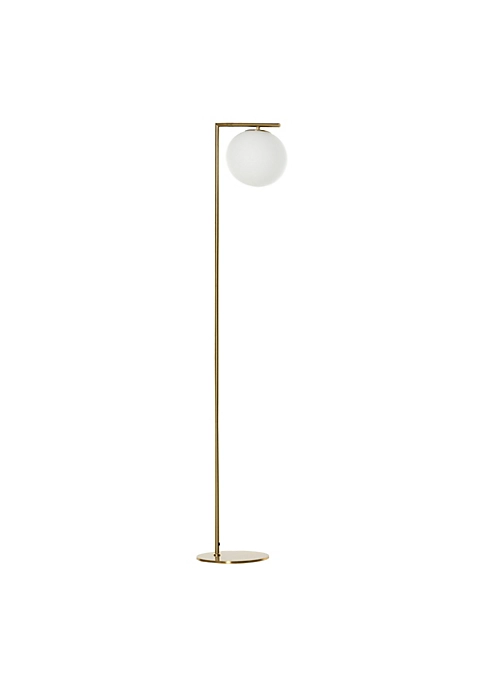 – Freestanding floor lamp includes a spherical-shaped glass lampshade;