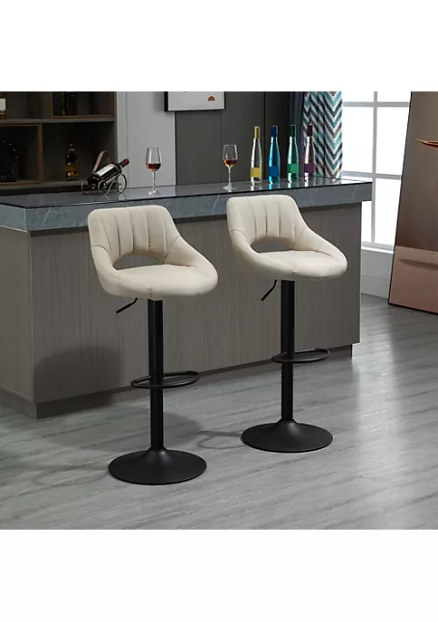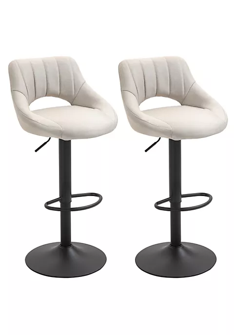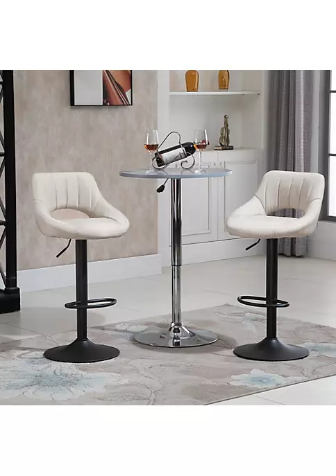 – Packaged in a set of 2, great for creating a matching look in your home; – A must for home bars, kitchens, and high dining spots; – Seat height is adjustable from counter height to bar height, swivel seat ensures free rotation; – Lower footrest prevents legs dangling around; – Its curved, cushioned seat and back provide optimal comfort. Filled with a soft sponge to relax the body; – Channel tufting and cut-out design make a distinct statement in any setting; – Round, large and heavy to keep the stool balanced when in use, non-skid rubber pads can well prevent ground scratches; – Assembly required;