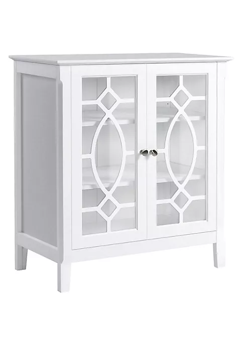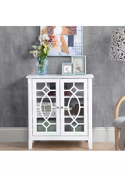 – Enclosed cabinet with large storage for holding daily accessories and utensils; – Equipped with 2 adjustable shelves to accommodate items of various heights; – Glass doors with scrolled framing allow you to display decorative dishware or cherished keepsakes and keep out the dust; – Can be used as a buffet, storage cabinet, and TV console; – Fits dining room, kitchen, living room or other limited spaces needing a bit more storage; – Made of MDF and glass for sturdiness and easy cleaning; – Anti-toppling design helps prevent furniture from tipping over; – Assembly required;
