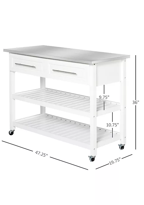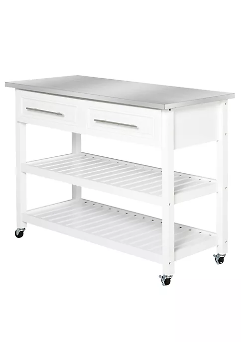 – 3-tiers with two pull-out drawers, two slatted storage shelves, and large countertop
