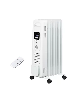 Best Pirce 😍 HOMCOM 1500W Digital Oil Filled Radiator Heater with 3 Heat Settings Portable Electric Space Heater with LED Display Timer Safety Cut Off and Remote Control White 👏