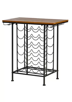 Discount 🌟 HOMCOM 24 Bottle Industrial Modern Wine Rack Table Freestanding 6 Tier Wine Bottle Organizer with Glass Stemware Holder Natural / Black 🔥