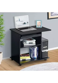 Best Sale 😉 HOMCOM Computer Desk Cart Mobile Small Office Workstation with Slide Out Keyboard Tray Adjustable Shelf and CPU Stand Black ❤️