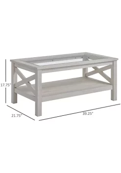 Flash Sale 😍 HOMCOM Farmhouse Style Coffee Table with Wood Frame Tempered Glass Tabletop and Underneath Storage Shelf for Living Room White Oak 🎉