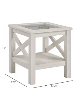 Cheapest 🤩 HOMCOM Farmhouse Style End Table with Wood Frame Tempered Glass Tabletop and Underneath Storage Shelf White Oak ✔️
